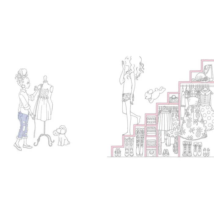 Popular artist Yuka Sato has the perfect coloring book for those looking for adorably feminine and fun art! Take a peek into the daily lives of girls Mary and Rola. Surprisingly detailed, you’ll have all sorts of scenes to color from a lush garden, to beach parties, to overflowing vanities and closets, plus much more!