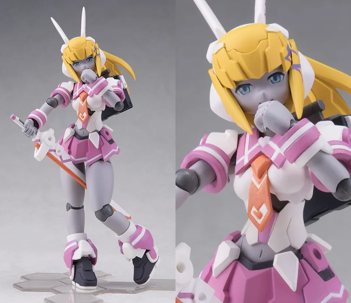 The Polynians are attacking again! And we couldn’t be happier! This time around, blond-haired Dreamy joins the party. Just as her Polynian kin, this cute robo girl has flexible ball joints from her neck to her ankles so that you can pose her just about any way imaginable. She’s dressed in a pink and white schoolgirl uniform, and her outfit is as blocky as you would expect of the Neoanthropinae lifestyle. Dreamy is decked out with multiple extra parts, including three faceplates, a sword, and a school bag that she can carry by hand or attach to her back. We assume the sword is handy for clobbering any strangers trying to peak at those adorable purple pantsu of hers!